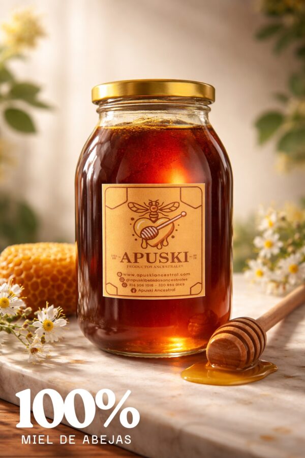 Disfruta de la Miel de Abejas Apuski, una miel 100% orgánica, natural y de origen silvestre. Recolectada de forma artesanal para preservar todas sus propiedades enzimáticas, vitaminas y minerales. Sin procesos térmicos ni aditivos.
